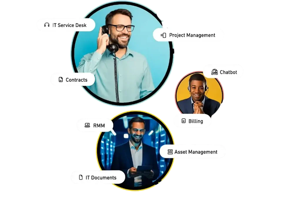 امنح المستخدمين واجهة مألوفة تتيح لهم التنقل بسرعة وسلاسة بين الأصول، والحوادث، وتذاكر الدعم، ومعلومات العملاء.